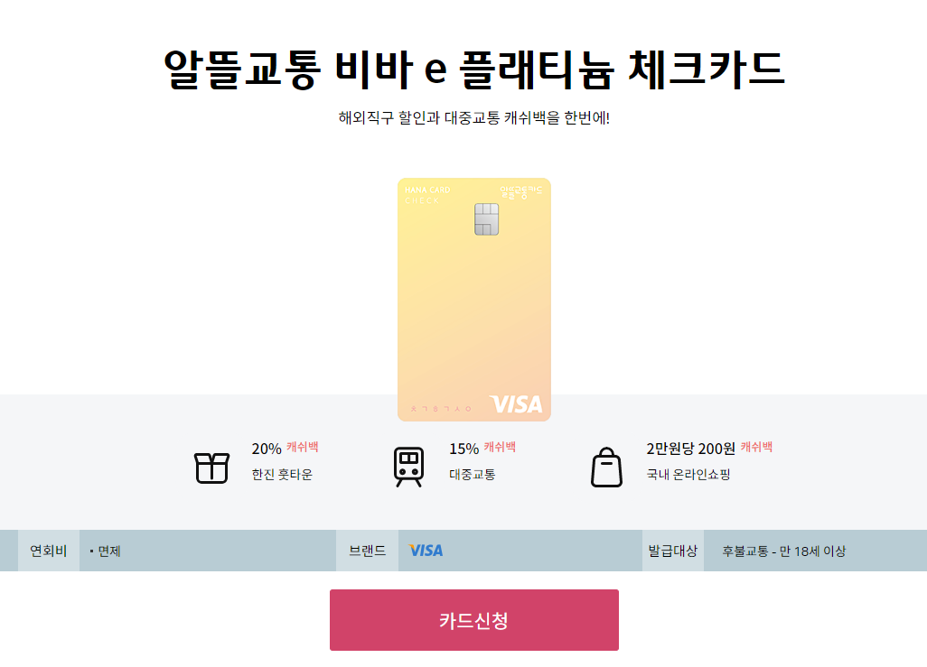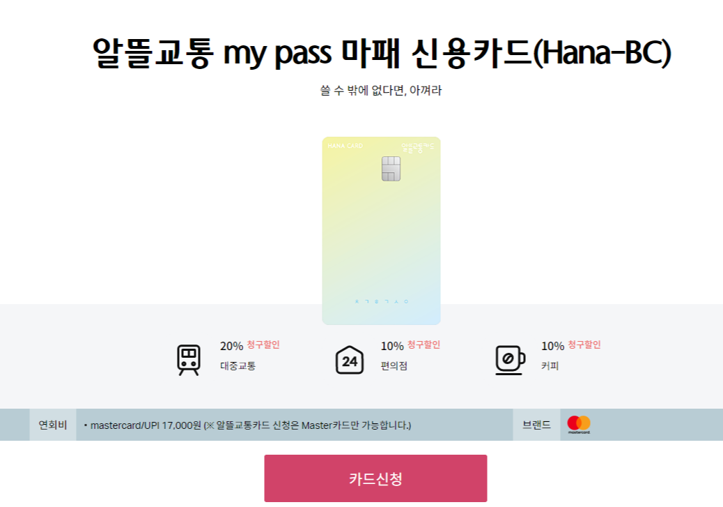 -전월실적 50만원 이상 대중교통 최대 1만5천원 청구할인