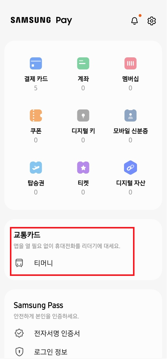 ※ 삼성페이로 교통카드를 사용하기 전에 NFC 설정이 켜져있는지 확인해야합니다.