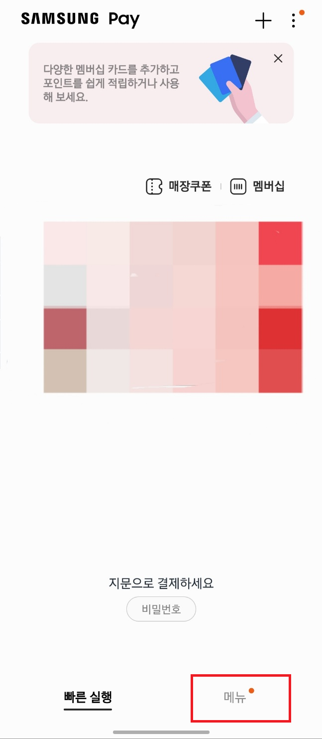 1. 삼성페이 앱 실행 > 메뉴 선택